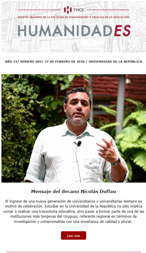 Subrayó la importancia de abrir la facultad a más voces y experiencias: estudiantes recién egresados de la Educación Media, quienes retoman estudios como segunda oportunidad, personas privadas de libertad, estudiantes del interior y todas las personas dispuestas a construir desde el respeto y la convivencia.