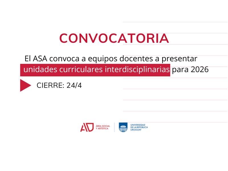 El Área Social y Artística (ASA) de la Universidad de la República convoca a equipos docentes del Área a presentar propuestas para conformar la nómina de unidades curriculares interdisciplinarias (UCI) a desarrollarse durante el semestre par del año lectivo 2026 (agosto-noviembre).