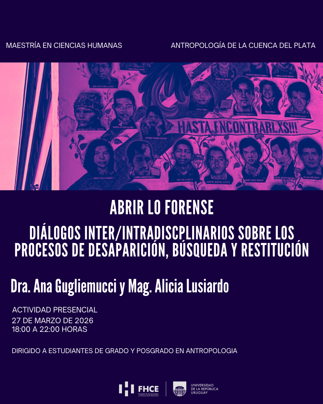 - Repositorio Luisa Cuesta: una experiencia de investigación en “archivos sensibles” (Anual). 70h/5cr. Responsables Javier Correa y Jimena Alonso. Programa